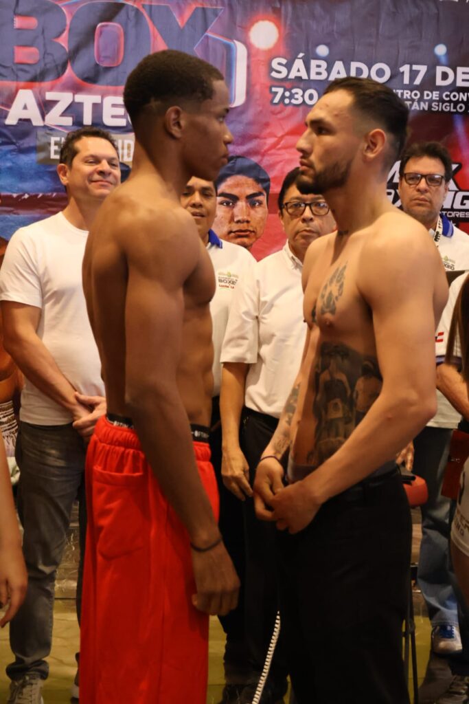 El campeón mínimo de la NABF del Consejo Mundial de Boxeo (CMB) detuvo la báscula en 48.700 (kg), mientras que el sudamericano ofreció 48.900 (kg); el pleito principal de ‘Box Azteca’ se desarrollará en la división minimosca a 10 rounds