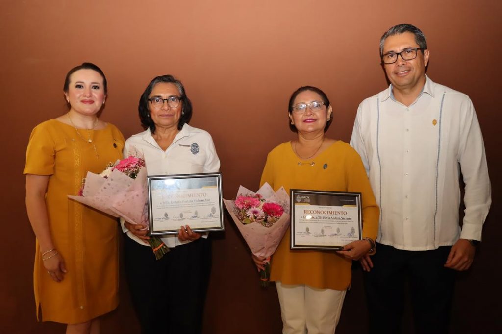 Durante la conmemoración, se entregaron reconocimientos a la Mtra. Lizbeth Paulina Padrón Aké, precursora de la LTS en la Facultad de Enfermería, y a la Lic. en Psic. y TS. Silvia Andrea Serrano Padilla, quien coordinó la licenciatura por 15 años y es también precursora del programa.