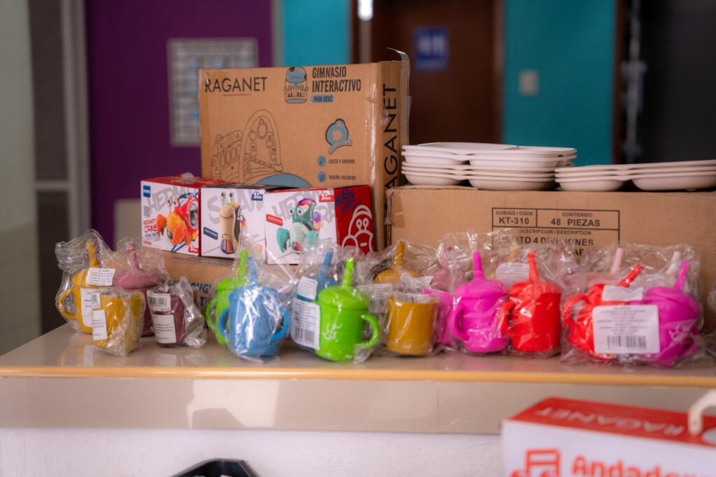 El equipamiento entregado permitió reforzar áreas clave de atención con andadores para bebés, instrumentos musicales, un mega corral de estimulación temprana, libros sensoriales y materiales de apoyo para actividades educativas y recreativas.