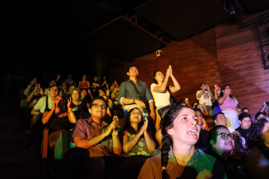 El formato del concierto, en una sala con cerca de 500 asientos, permitió lograr un ambiente de mayor intimidad y cercanía, lo cual facilitó la entrega total de las y los jóvenes que en su mayoría llenaron el Palacio de la Música.