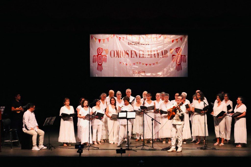 El teatro Daniel Ayala Pérez resonó con el concierto de causura del 2º Encuentro de Coros en el Mayab, que contó con la participación de más de 150 voces de diferentes partes del país que, al unísono, cerraron las actividades del festival.