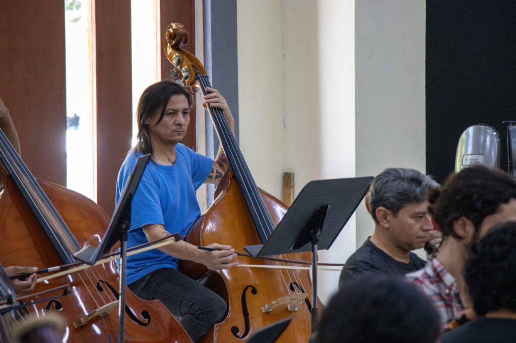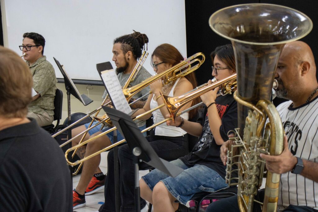 En el Salón de Usos Múltiples de la UNAY, las y los jóvenes músicos ensayan intensamente bajo la guía de sus docentes, afinando cuerdas, puliendo metales y ajustando arcos para que cada nota se integre al lenguaje rockero de la legendaria banda mexicana.