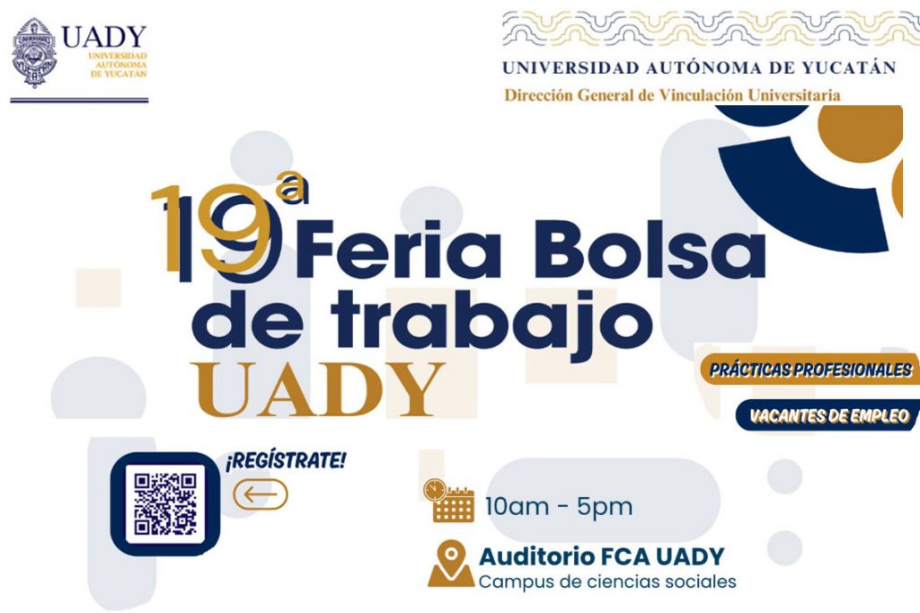 Con el firme propósito de fortalecer los lazos entre la academia y el sector productivo, la Universidad Autónoma de Yucatán (UADY) llevará a cabo la 19ª Feria Bolsa de Trabajo, un evento institucional consolidado que brinda oportunidades de inserción laboral y prácticas profesionales a estudiantes y egresados de la comunidad universitaria.