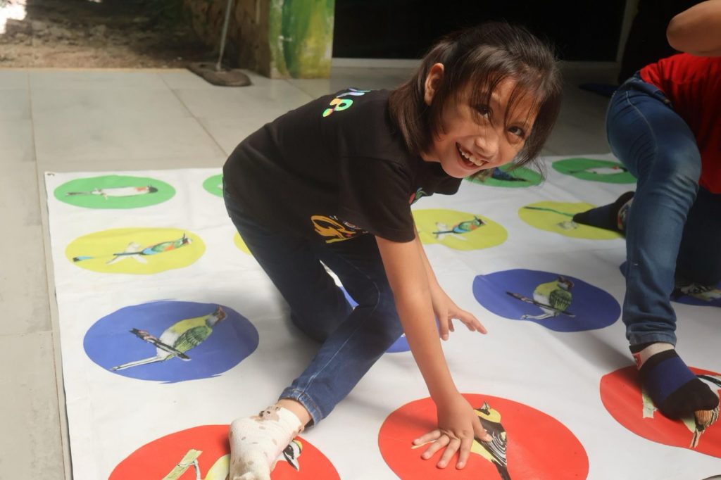 Para concluir la jornada, niñas y niños, junto con sus madres y padres, participaron en el juego educativo “Twister de Aves”, diseñado para aprender a identificar aves locales mediante sus colores, formas y cantos, integrando el aprendizaje ambiental con actividades lúdicas.