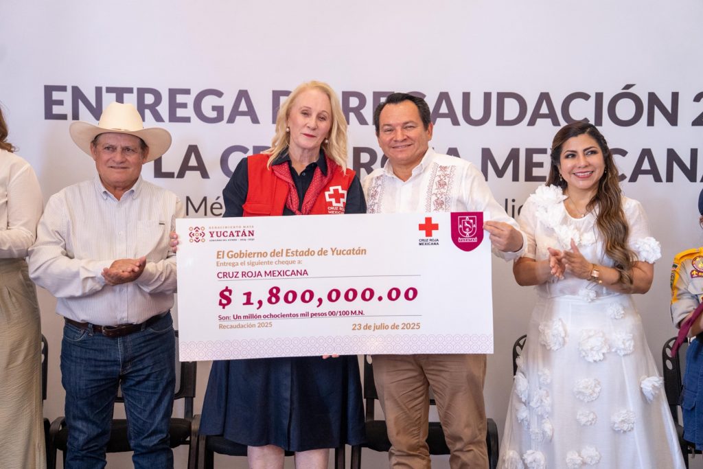 El mandatario estatal anunció la entrega de 1.8 millones de pesos a la benemérita institución, en el marco de su Colecta Anual 2025, como parte del compromiso del Gobierno del Renacimiento Maya con la salud de las familias yucatecas.