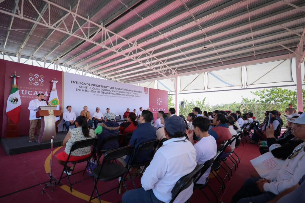 En su gira de fin de año y como parte del cumplimiento de compromisos con la comunidad, el Gobernador Joaquín Díaz Mena inauguró un domo y la rehabilitación de la cancha en la telesecundaria “Margarita Maza de Juárez”, en Las Coloradas, con una inversión superior a 4.1 millones de pesos, destinada a mejorar las condiciones para el aprendizaje y la convivencia escolar.