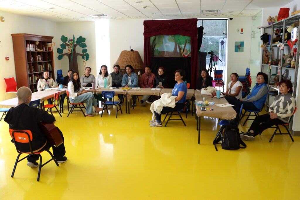 El curso iniciado este día, con la guía de la cantante, compositora y artesana vocal San Cuevas, tiene como objetivo trabajar la presencia, pues entre las y los participantes se encuentran artistas del teatro guiñol o colaboradores que utilizan la voz como parte de su labor cultural, quienes participaron de diferentes y divertidas dinámicas vocales en las cuales también hicieron uso del cuerpo como medio de expresión.