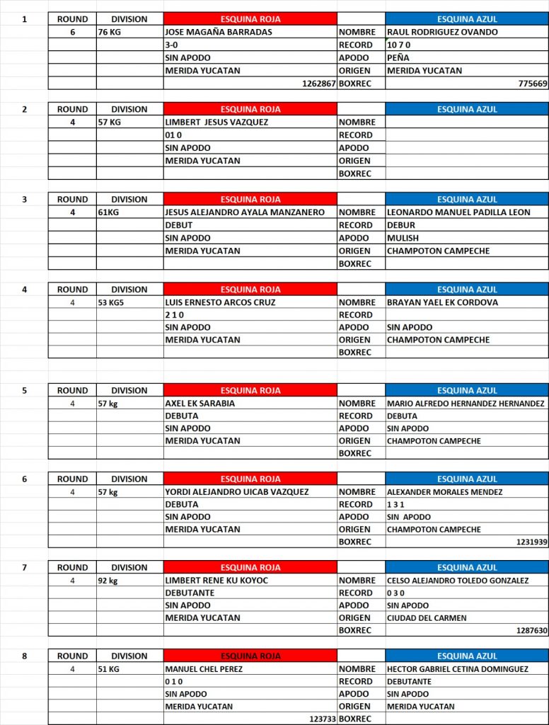 7 pugilistas del estado de Campehe vendran a pelear ante Yucatecos.