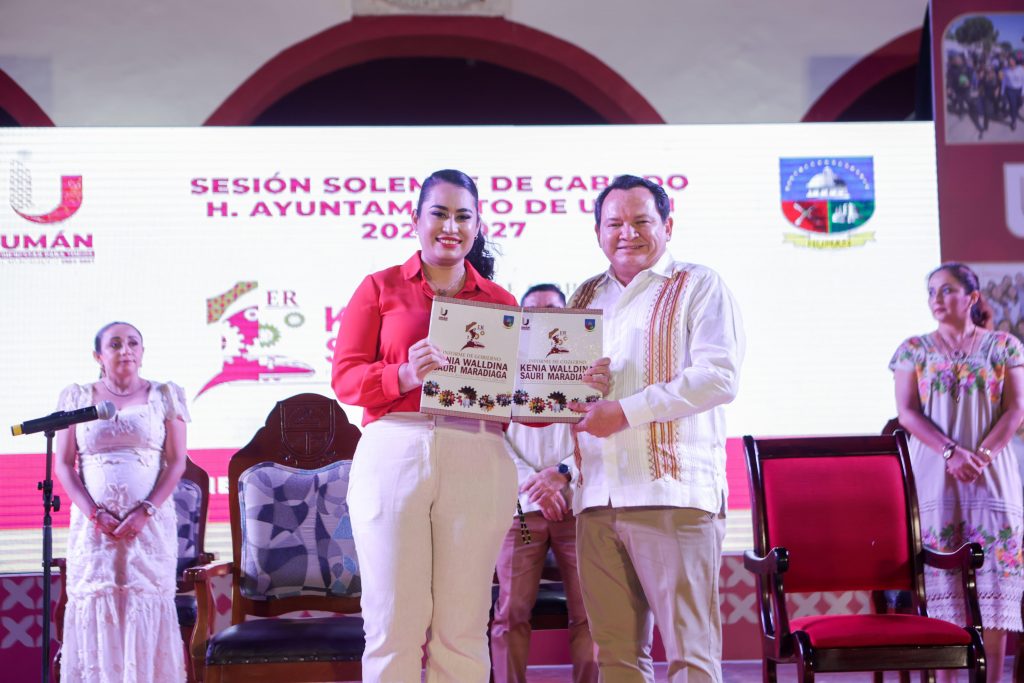 El Gobernador Joaquín Díaz Mena participó en la sesión solemne del Primer Informe de Gobierno de la alcaldesa de Umán, Kenia Sauri Maradiaga, donde reconoció los avances alcanzados en el municipio y refrendó el compromiso del Gobierno del Estado con el bienestar de sus habitantes.