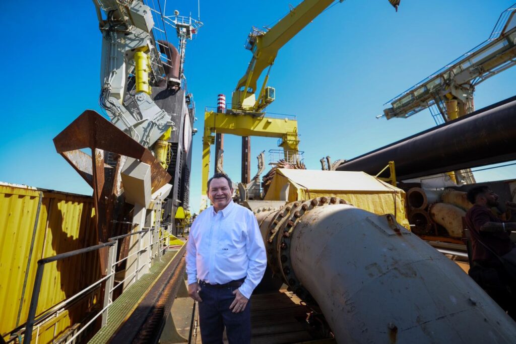 En visita al buque de dragado Fernando de Magallanes, el Gobernador Joaquín Díaz Mena informó que la primera etapa del dragado para la ampliación y modernización del Puerto de Altura de Progreso registra 90% de avance.