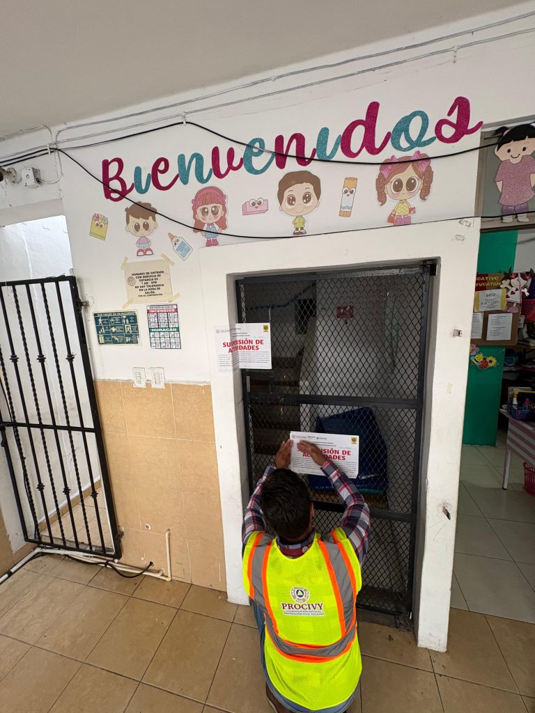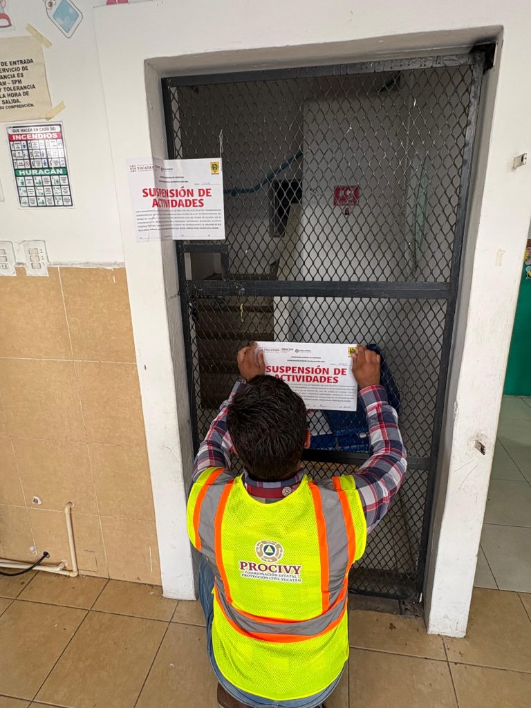 La Coordinación Estatal de Protección Civil (Procivy) informa que, en respuesta a una denuncia ciudadana, se inspeccionó la escuela privada de educación preescolar denominada Instituto Educativo Peninsular de Yucatán, ubicada al poniente de la ciudad, donde se encontró que no cuenta con programa interno, señalética adecuada y sus extintores han caducado, entre otras irregularidades.