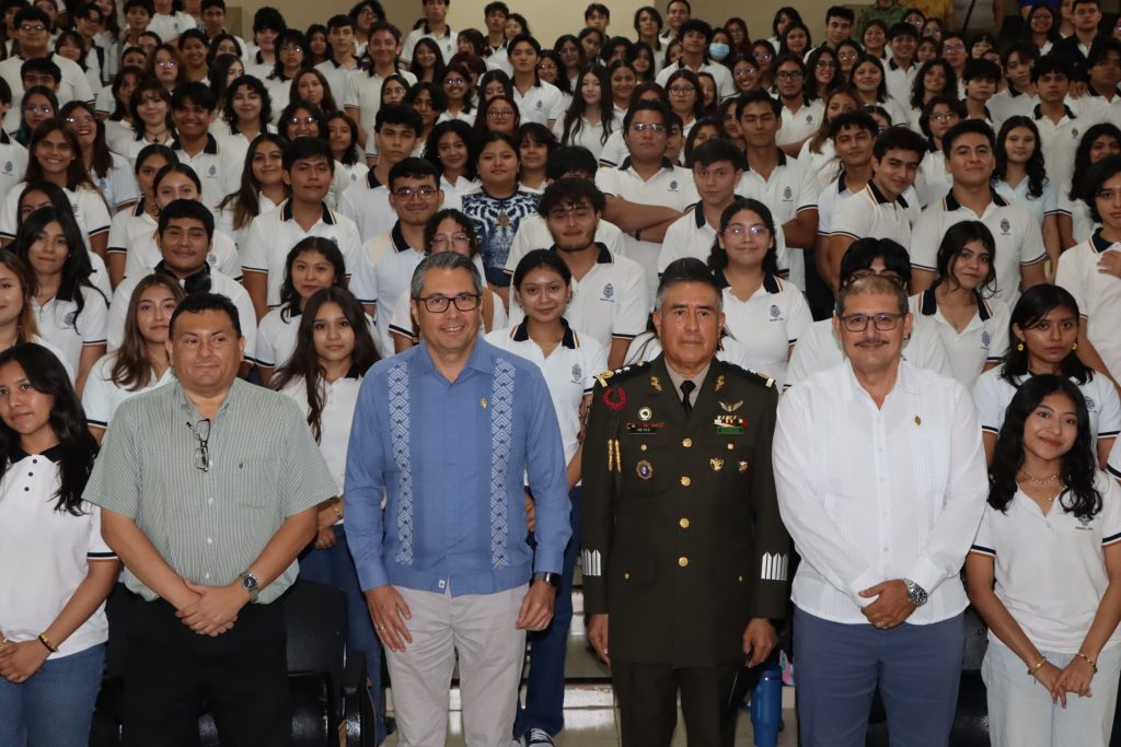 En la plática, realizada en el Auditorio de la Escuela Preparatoria, se presentaron los programas y misiones dedicadas a la protección de la población, soberanía e independencia de México por parte del Ejército Mexicano, con el objetivo de sensibilizar sobre la importancia de la seguridad nacional como compromiso compartido entre gobierno, instituciones educativas y sociedad civil.