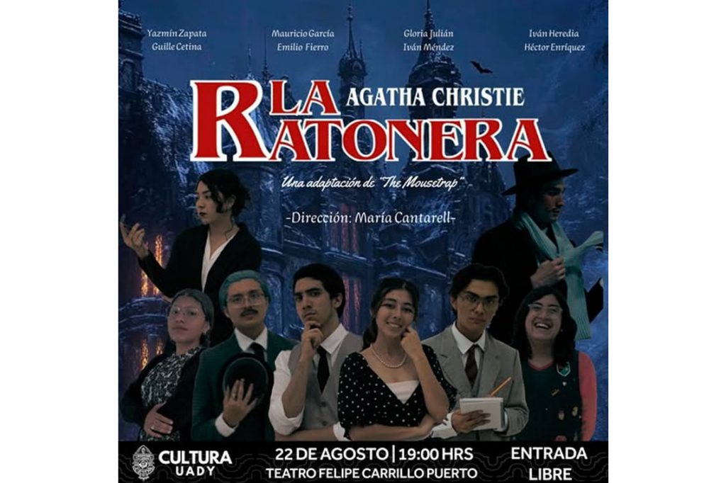 La Universidad Autónoma de Yucatán (UADY), a través de su Compañía de Teatro y como parte del Festival Internacional Héctor Herrera “Cholo”, presentará este 22 de agosto a las 19:00 horas en el Teatro “Felipe Carrillo Puerto”, la puesta en escena La Ratonera, una de las obras más emblemáticas de la escritora británica Agatha Christie.